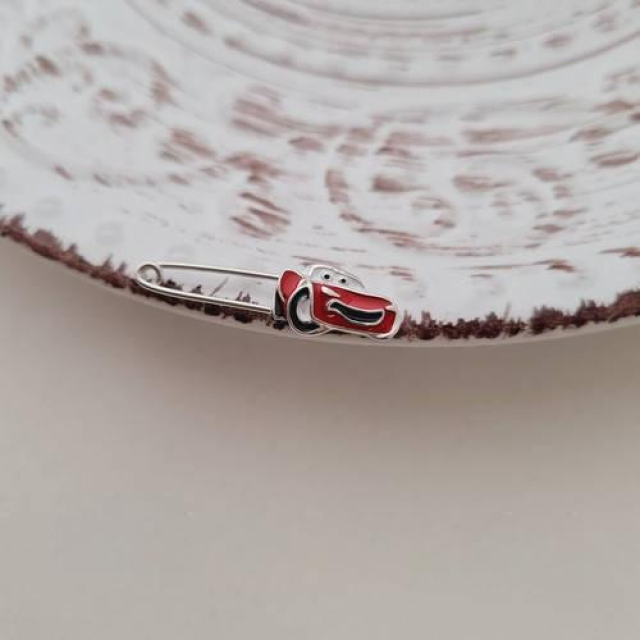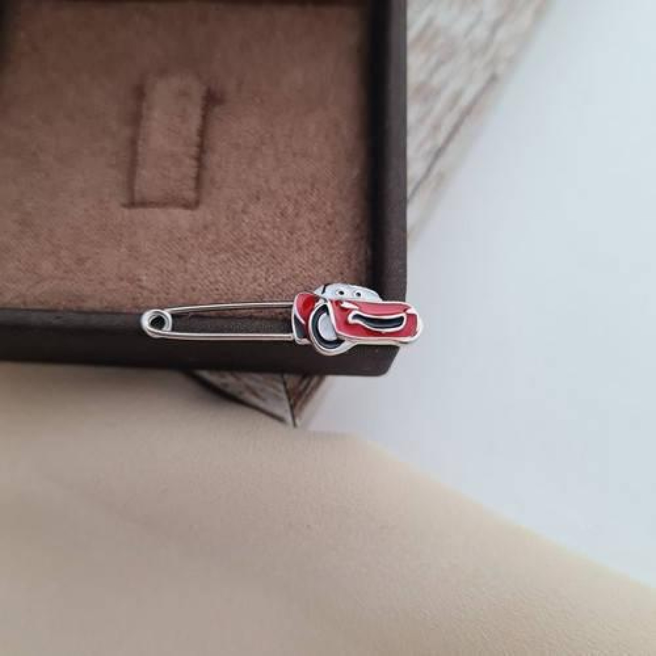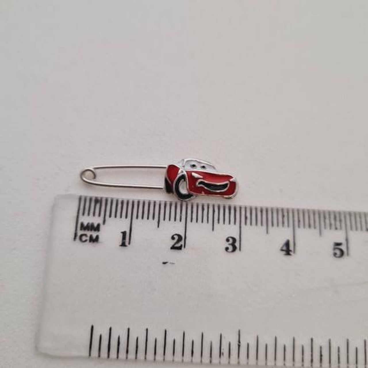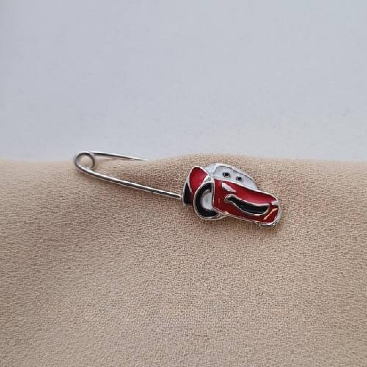 Шпилька срібна машинка з відомого мультика з червоною емаллю
