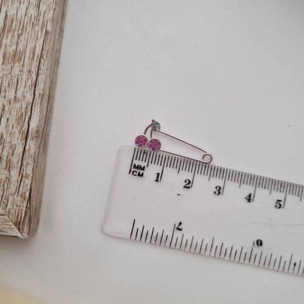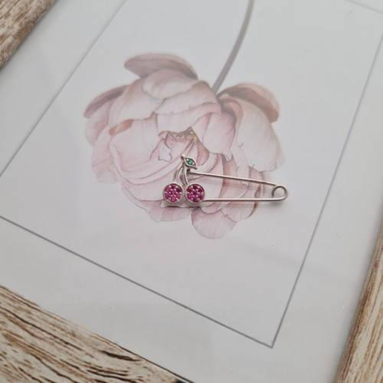 Срібна брошка-шпилька ЛК-0215рзШ-ЮДК у формі вишеньки стане яскравим акцентом у гардеробі вашого малюка, додаючи нотку грайливості та радості в повсякденні образи. Брошка витончено прикрашена двома соковитими ягідками, інкрустованими сяючими рожевими фіанітами, які переливаються на світлі безліччю іскристих граней. Листочок, прикрашений насичено-зеленим фіанітом, додає виробу свіжості та жвавості, підкреслюючи його природну красу. Срібна брошка-шпилька ЛК-0215рзШ-ЮДК легко і безпечно фіксується на одязі, чи то легка блузка, курточка, чи то шапочка, надаючи милого й ошатного вигляду будь-якому образу. Завдяки поєднанню ніжних кольорів і мерехтливого каміння, ця брошка привертає увагу і дарує позитивний настрій. Шпилька виконана зі срібла з ідеальним оздобленням, що робить її не тільки красивим, але й надійним аксесуаром. Виготовлена брошка шпилька зі срібла 925 проби. Догляд за такою ювелірною прикрасою дуже простий - раз на місяць промивайте її в мильній воді і просушуйте рушником, і вона буде радувати вас дуже довго своїм блиском і сяйвом.