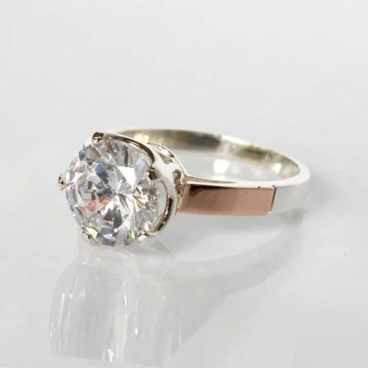Срібне кільце з фианитом і золотими вставками, які ви маєте можливість бачити перед собою на фото, виконані зі срібла 925 проби і золота 375 проби.