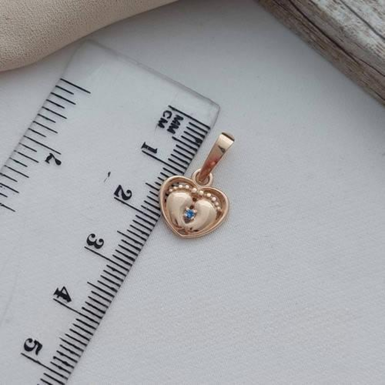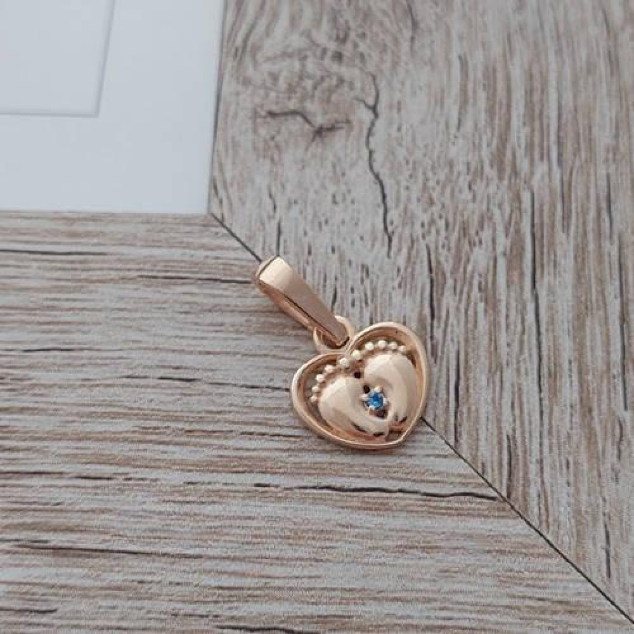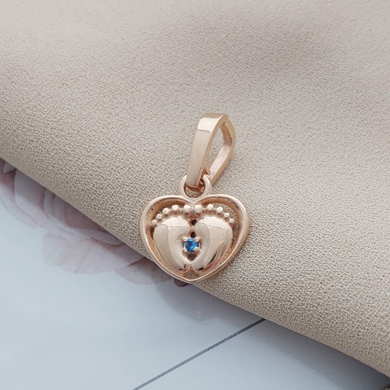 Підвіска золота сердечко з дитячими ніжками та синім круглим фіанітом